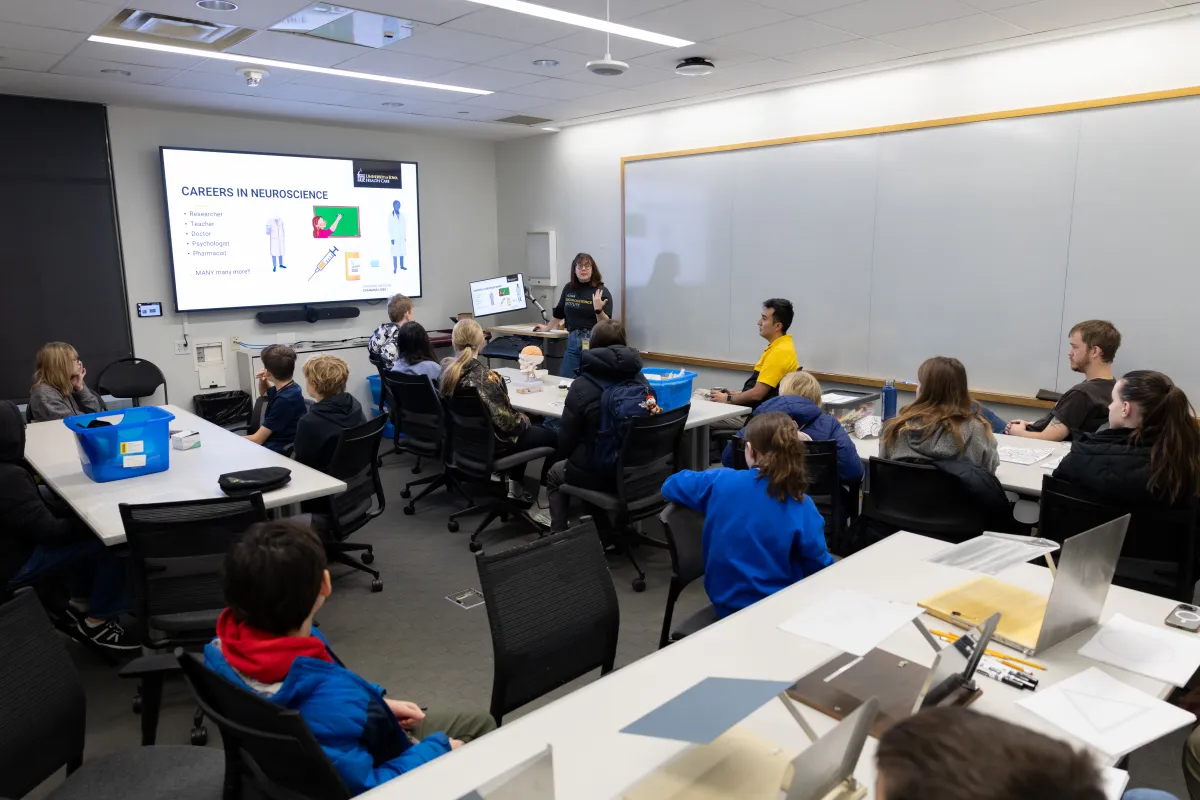 UI Health Care’s STEM programming will expand in 2026 with the addition of Teens Go STEM, a free career exploration event scheduled for March 7. Students in grades 9 through 12 will join medical and health sciences students and professionals from the University of Iowa for hands-on simulations and activities focused on health care skills, innovations in health care, critical issues impacting Iowa’s health, pursuing a career in health care, and health literacy.